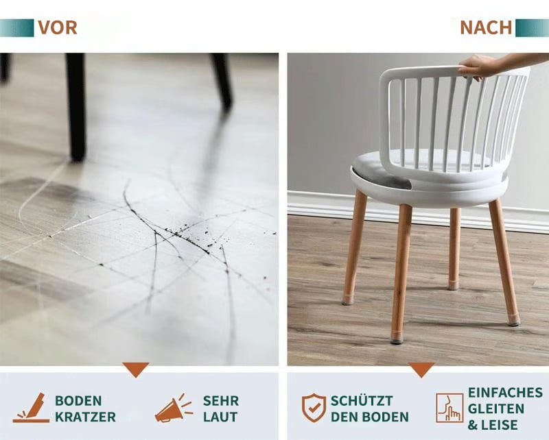 This universal chair leg cover fits chair legs of any shape. Made from highly elastic TPR material (thermoplastic rubber), it adapts perfectly to the shape of the chair legs and ensures a firm, durable fit that does not slip easily.